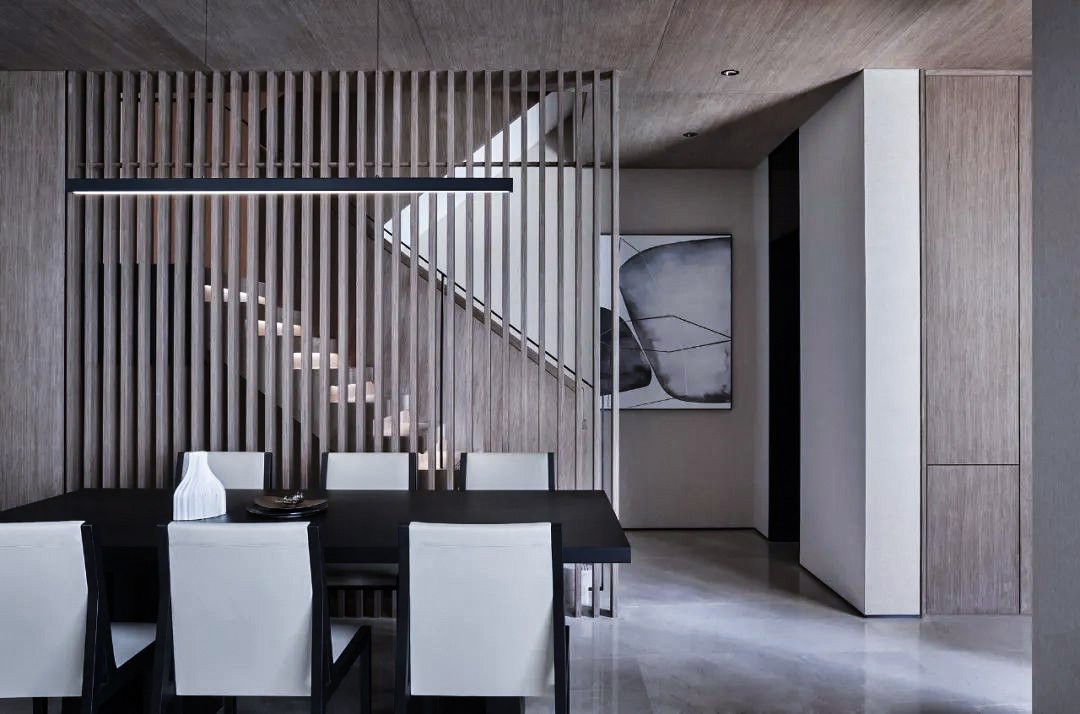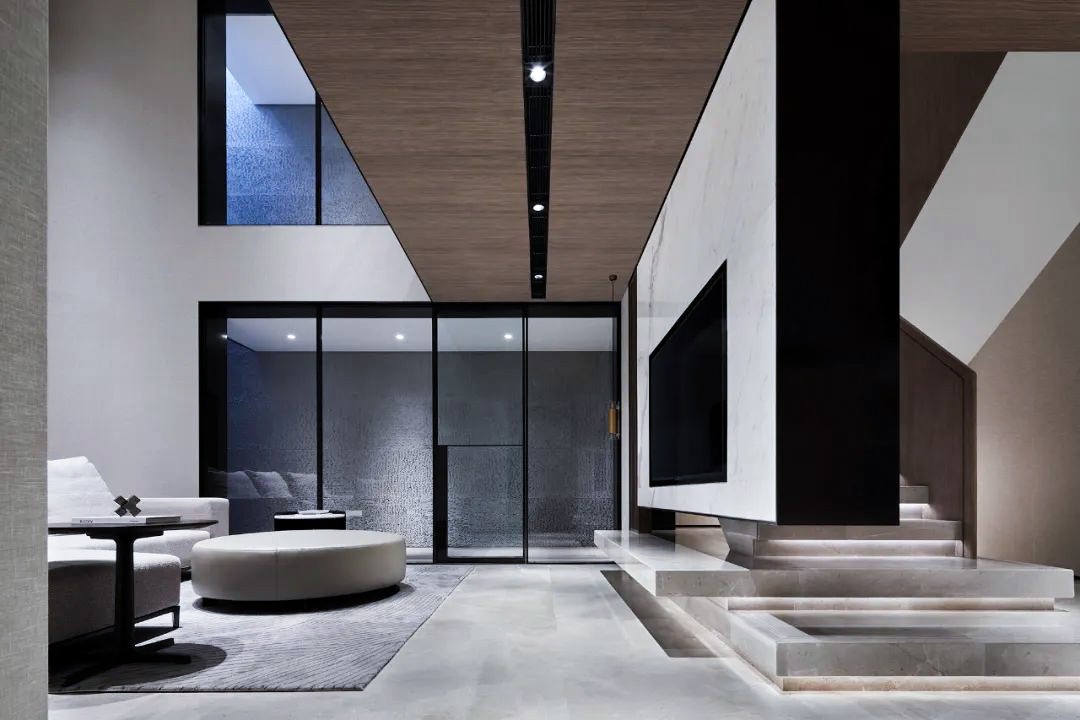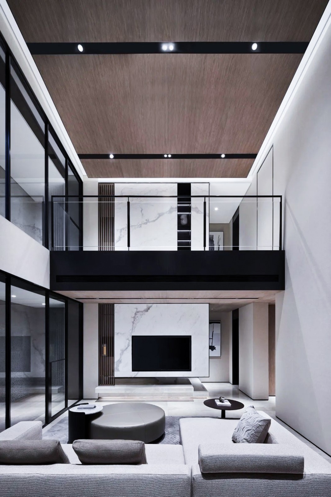 The first floor has a spacious layout and a floor height of 6.2 meters, with large floor-to-ceiling landscape windows. Its dimensions and comfortable style are obvious. The sense of extension, lighting, materials and form transition are carefully measured to add charms to the details.