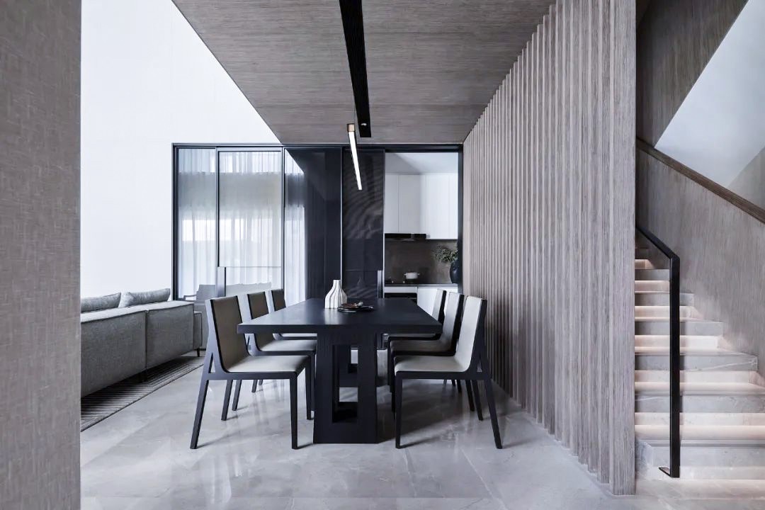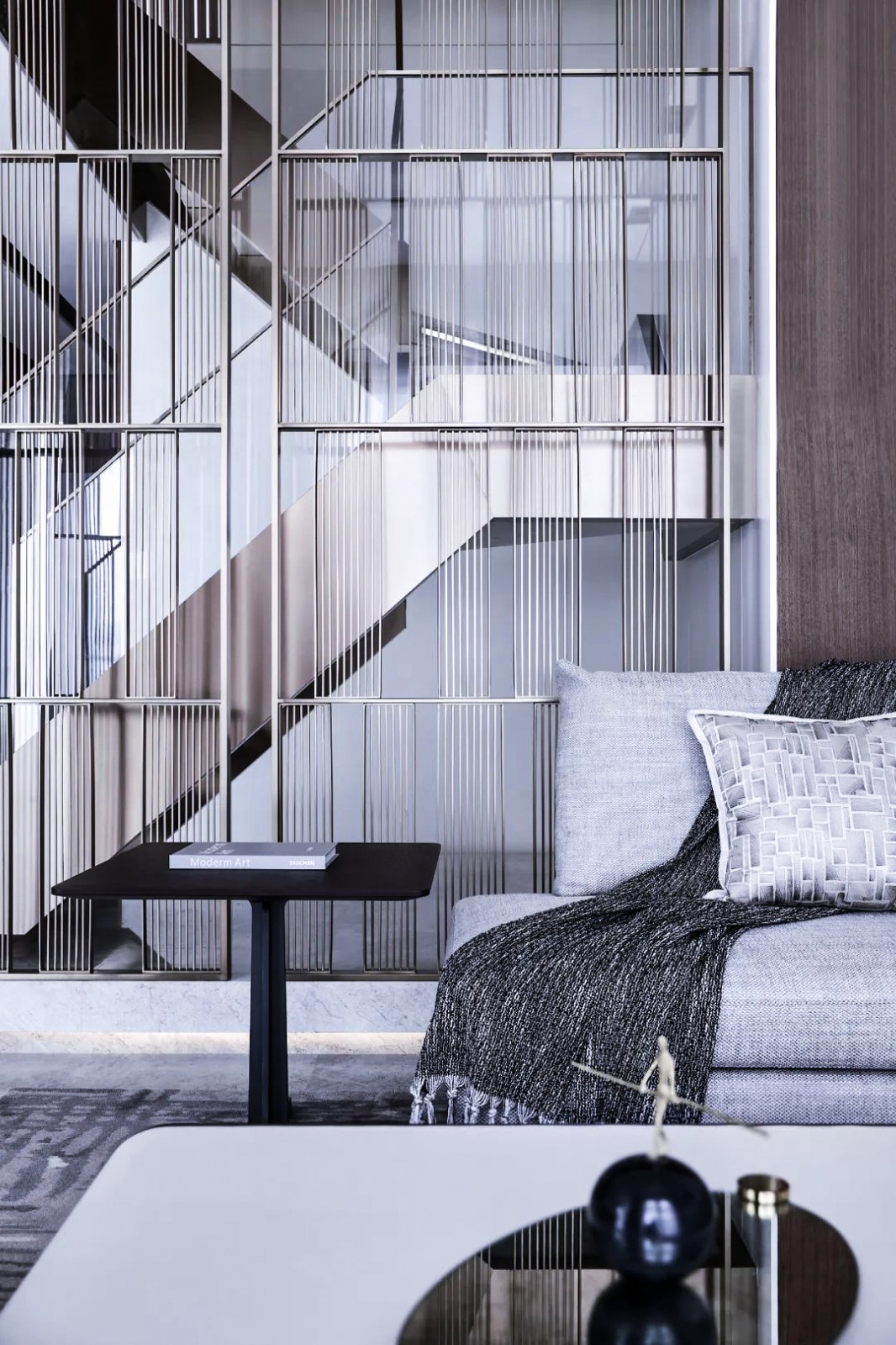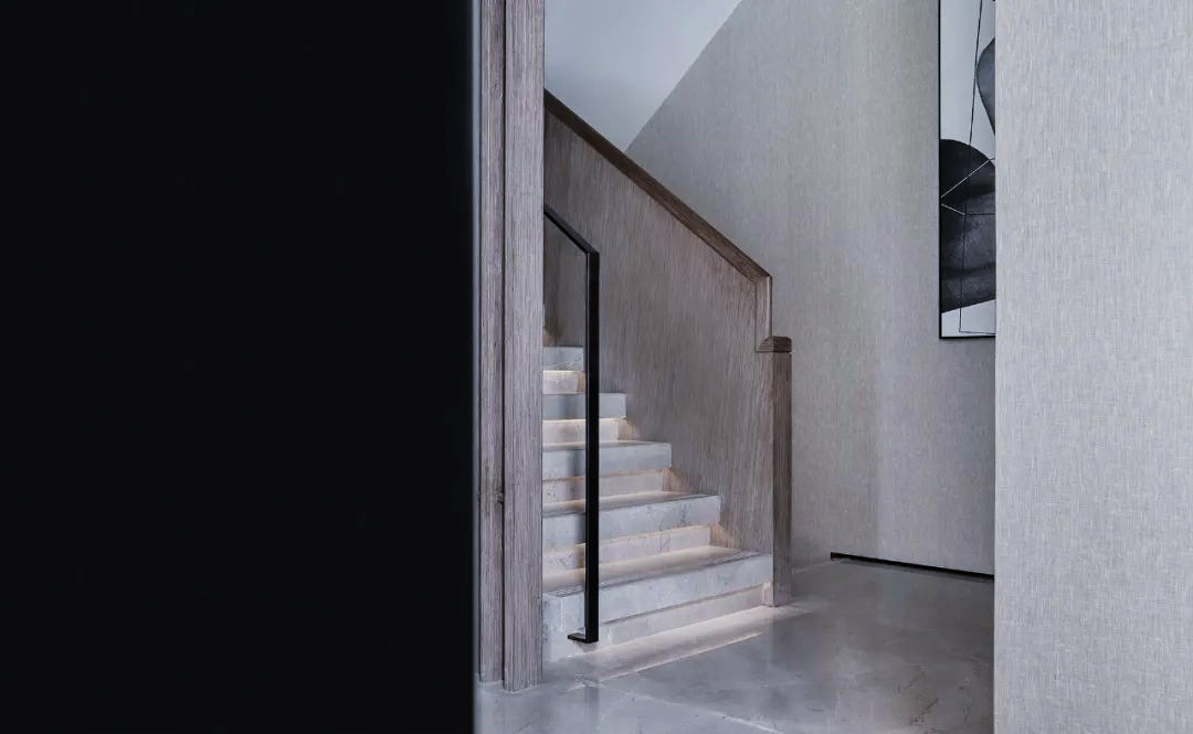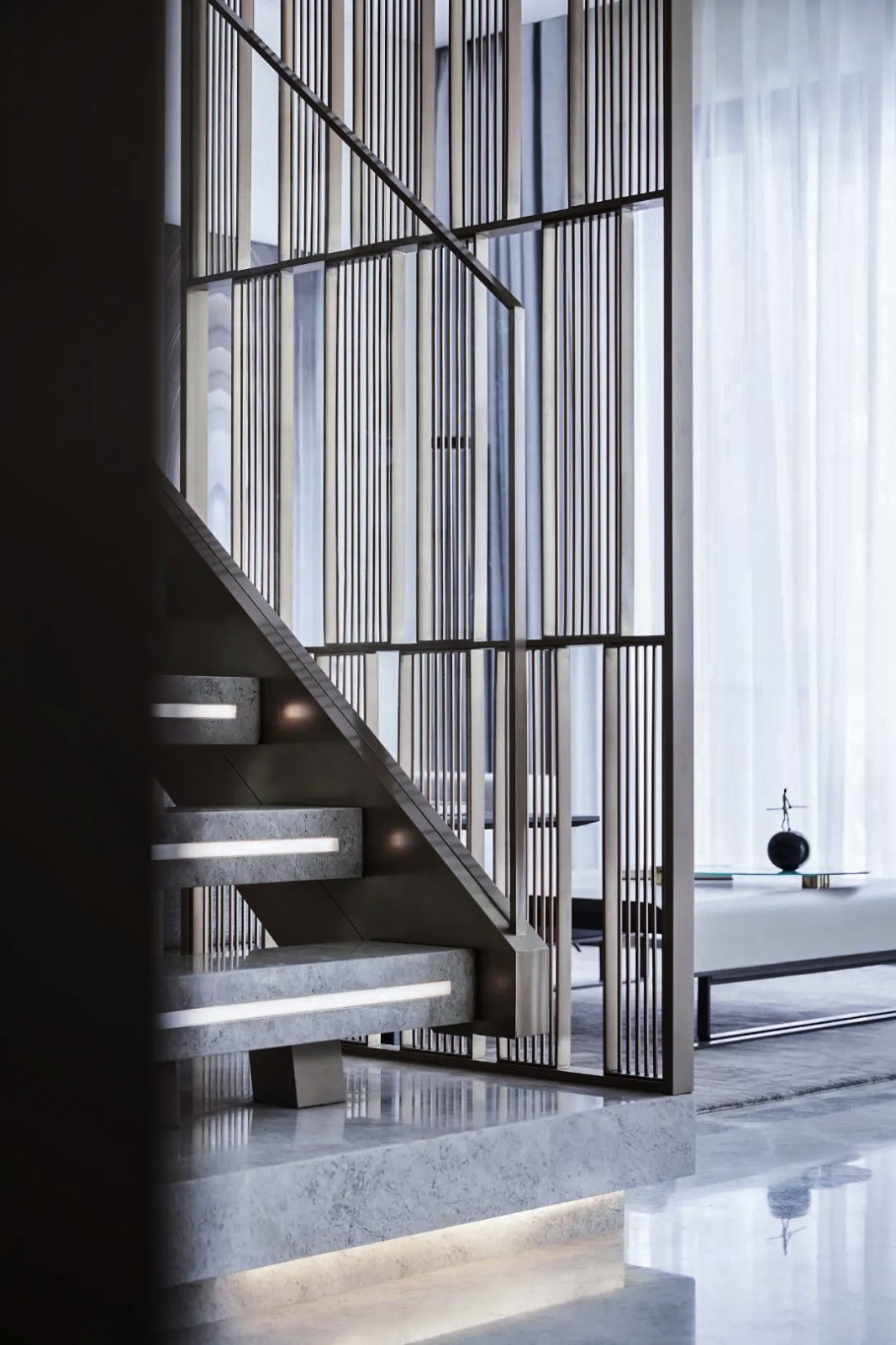 The lines in the stairway reveal both the connection and independence of different areas; and the ingenious suspended handrail is a perfect combination of function, aesthetics and technique. Every step you take, you can feel the beauty of flowing light and shadow.