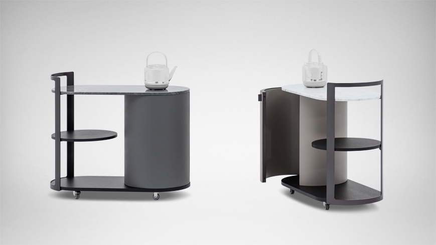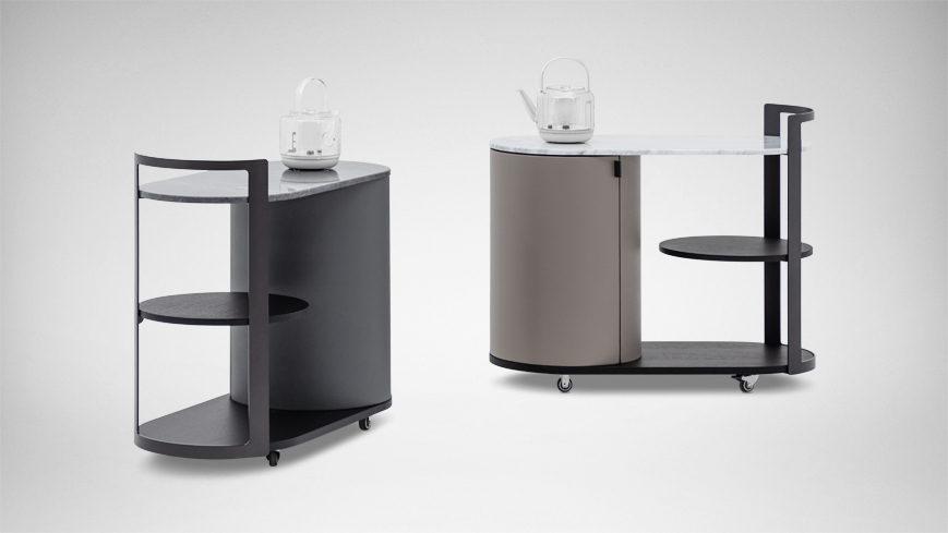 星月茶车外形优雅圆融,隐藏式储水和走线设计令室内整洁美观。