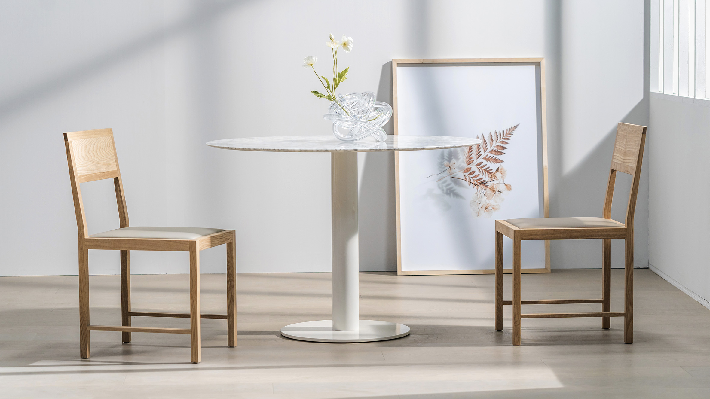 将轻巧线条与稳健结构自然融合,可舒适坐靠,亦可轻松单手托起,完美呈现出葡萄牙建筑大师阿尔瓦罗·西扎的设计初衷。浅灰色皮质坐面的搭配,让质朴与现代气息交织。扶手款和不带扶手款的多样设计,让人文关怀与个性选择更为贴心。