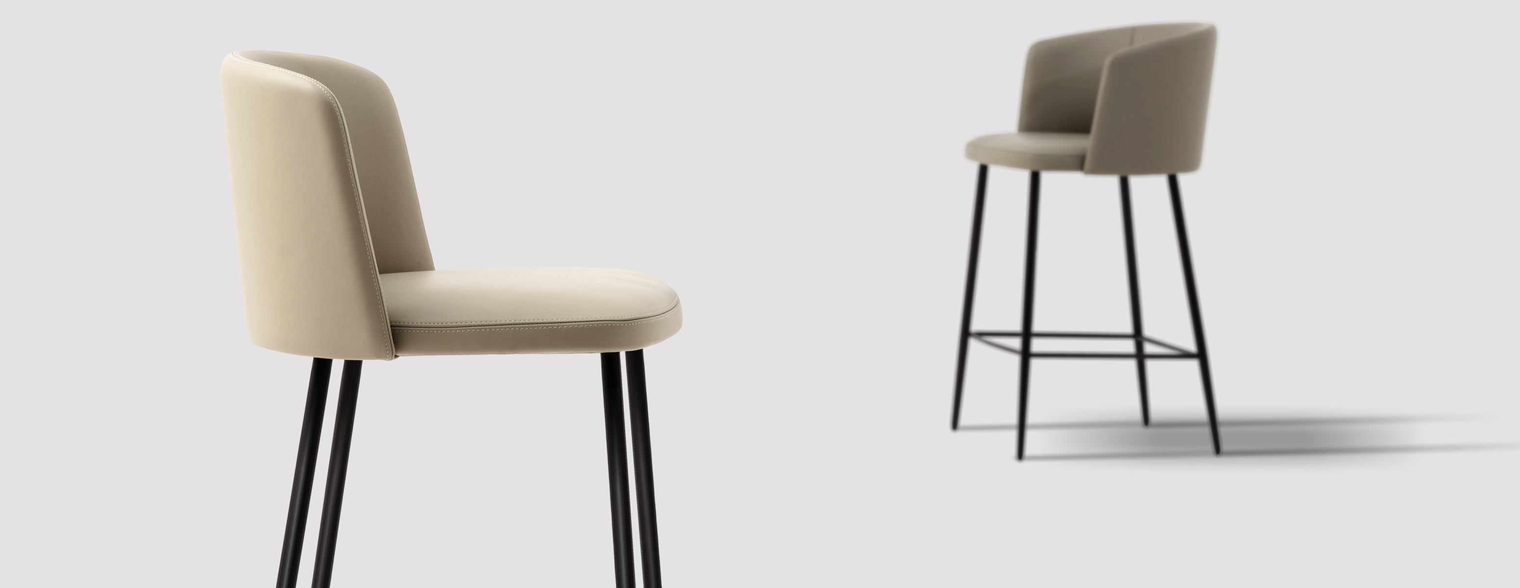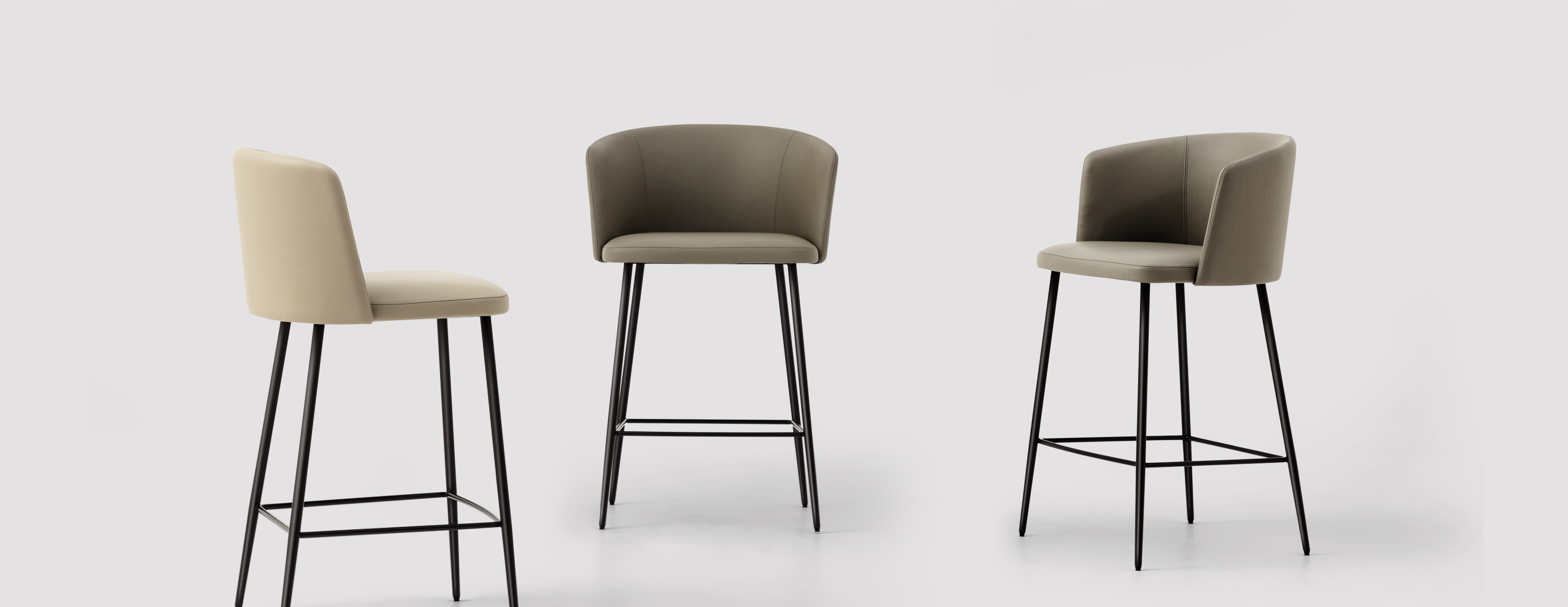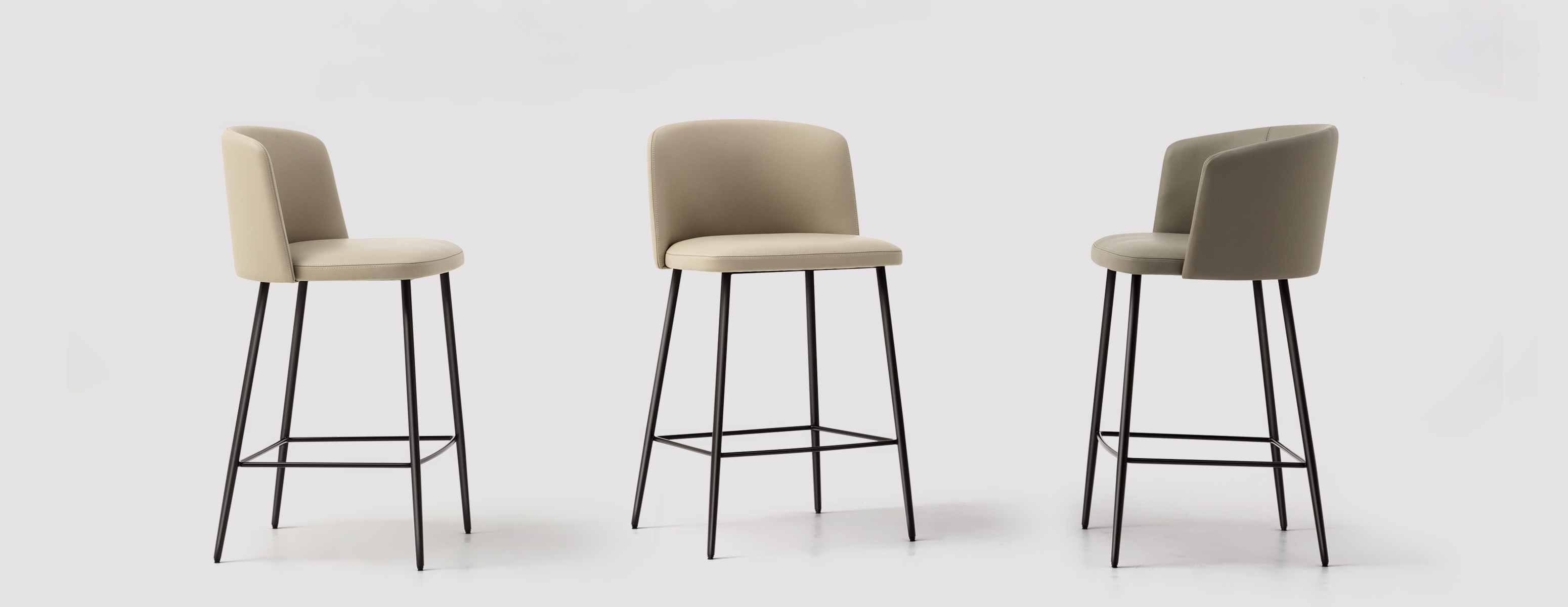 不同款式调配出不同感受,可轻轻摇曳扶手的餐椅,身姿高挑的吧椅,各自传递出生活的别样情趣。