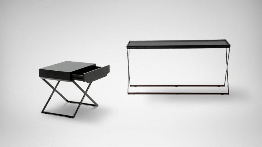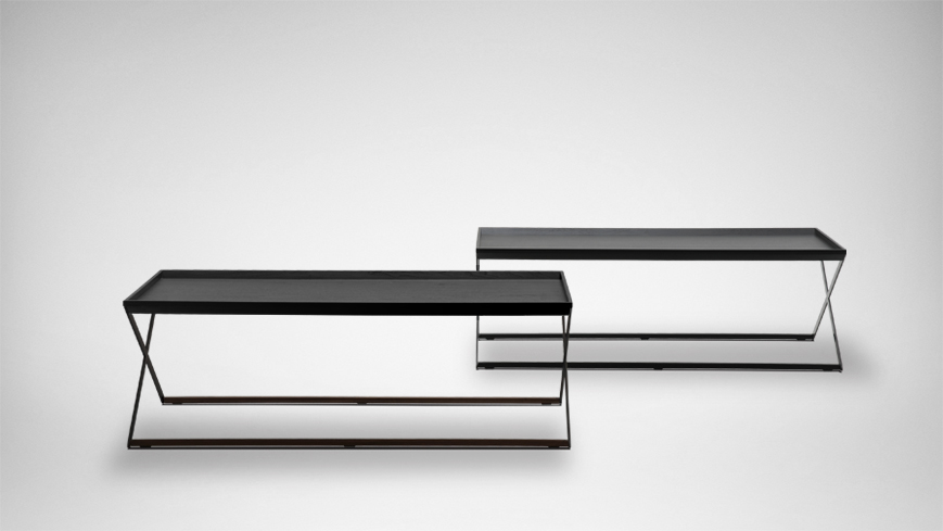 这一系列产品是设计师向简约混搭风格的致敬。托盘式桌面边缘设计,呼应交叉的扁钢腿型,减少了视觉厚重感,具有小巧和多用途的特点。可用做8868平台_8868网页版、边几、床头柜和8868平台_8868网页版背桌。