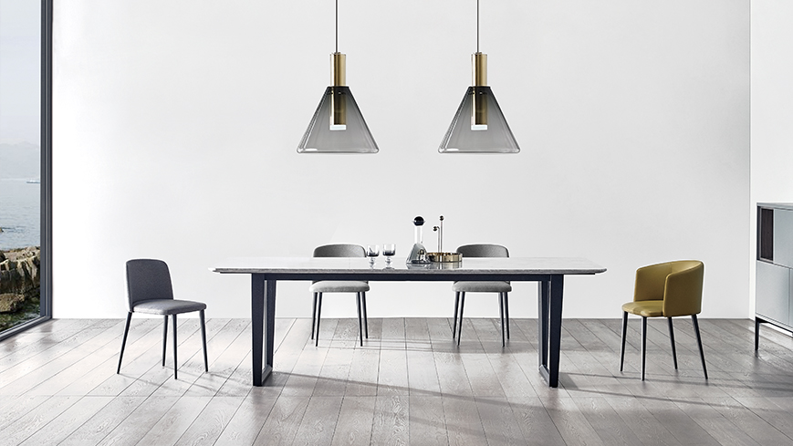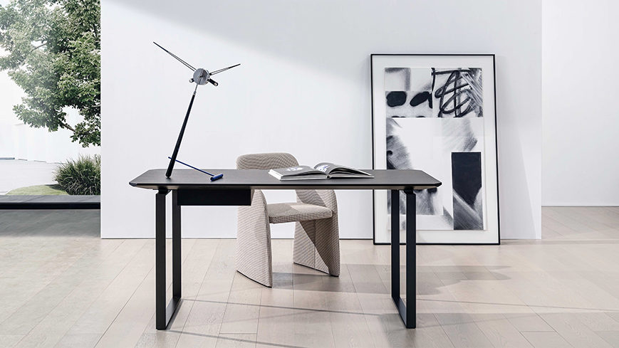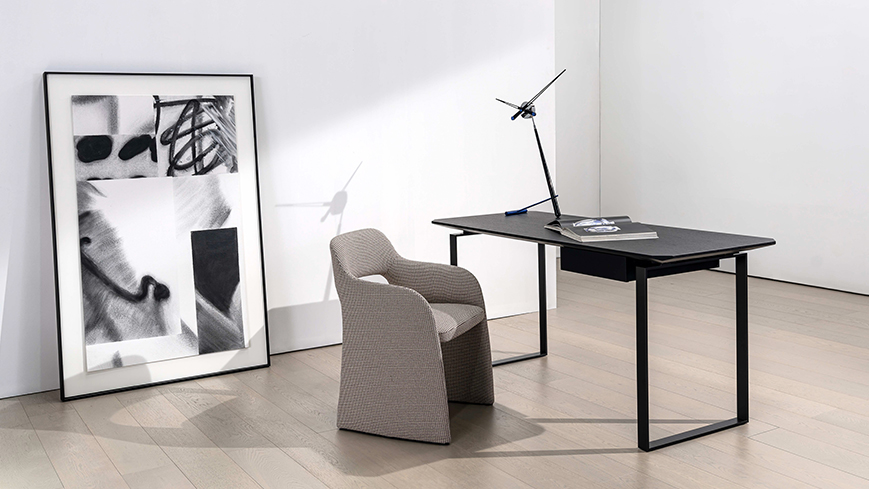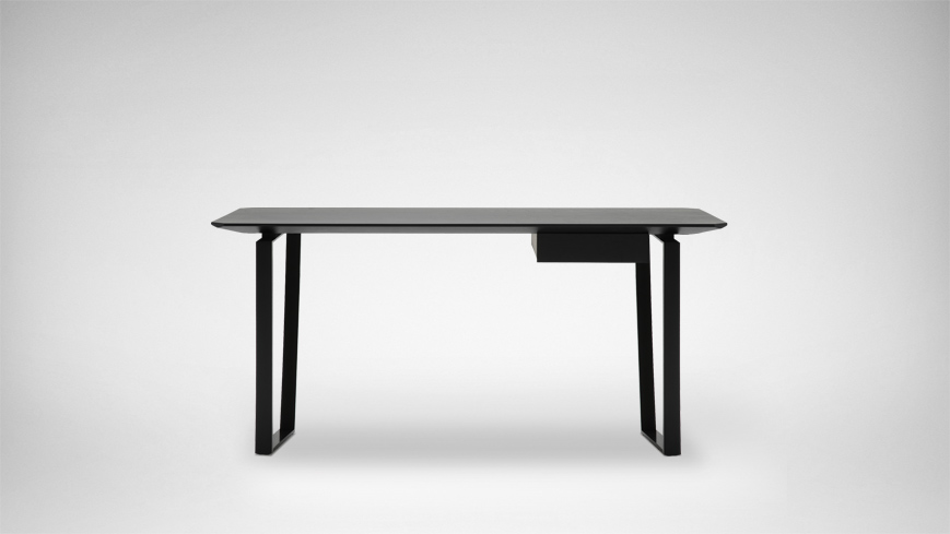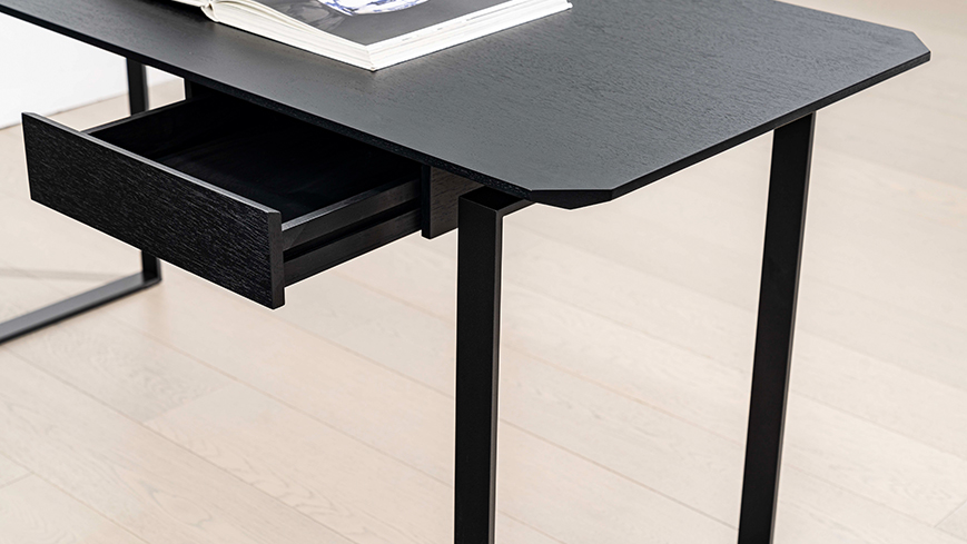 桌面、桌腿、抽屉等不同方向和角度的切面,为产品赋予了未来感,可用作餐桌或书桌。