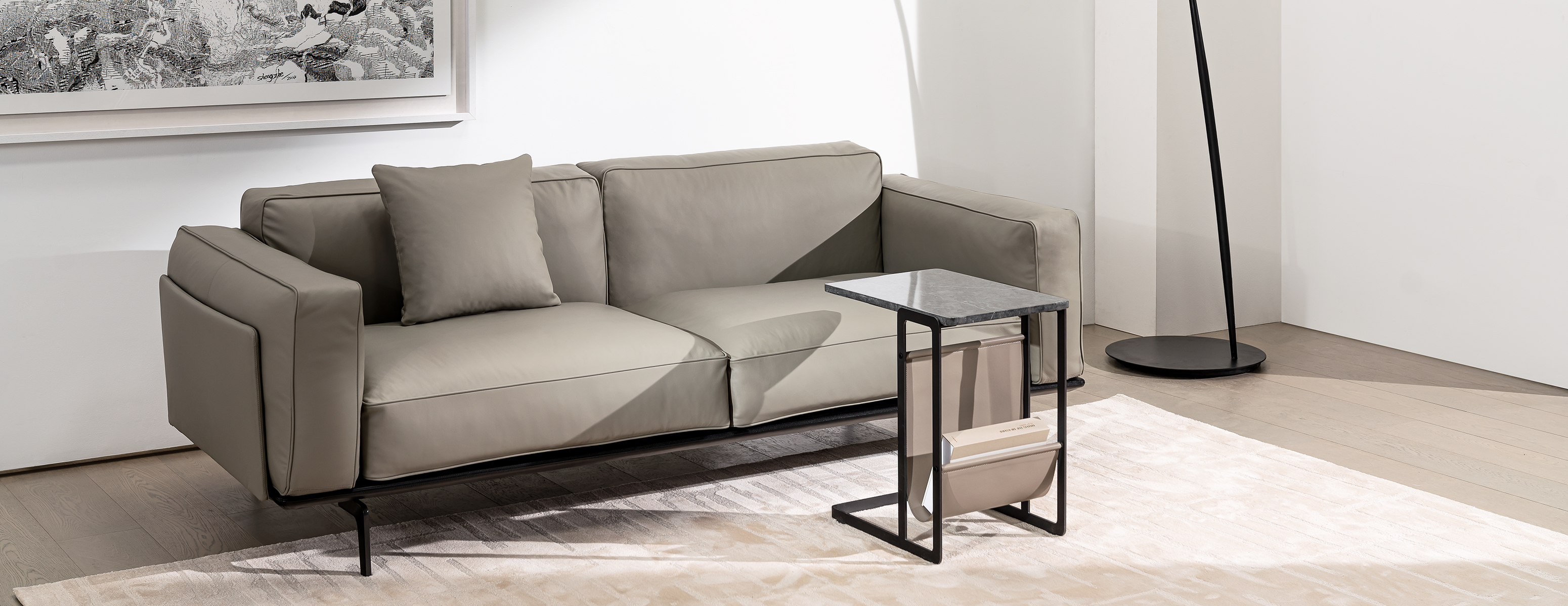 方正酷感的金属框架包裹柔软蓬松的活动软垫,高挑利落的金属底腿支撑起简约大气的廓形,塑造刚柔并济、浓淡皆宜的视觉对比,让你享受舒适生活之余,轻松定义时尚摩登。