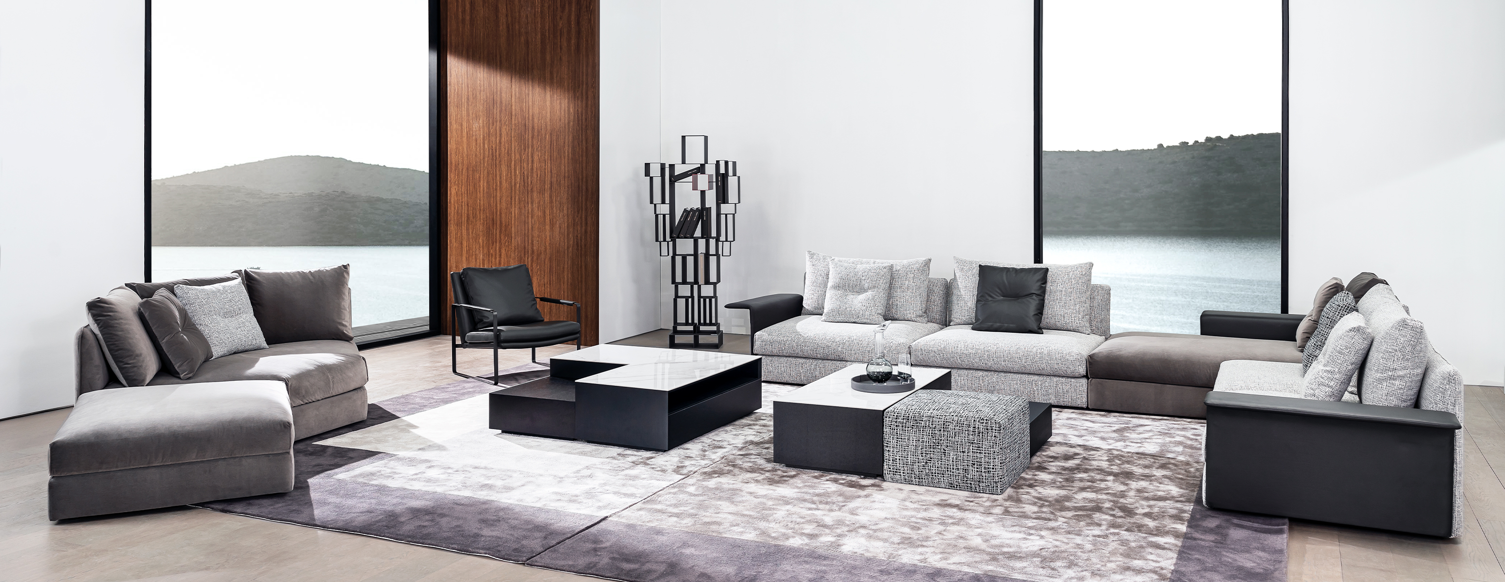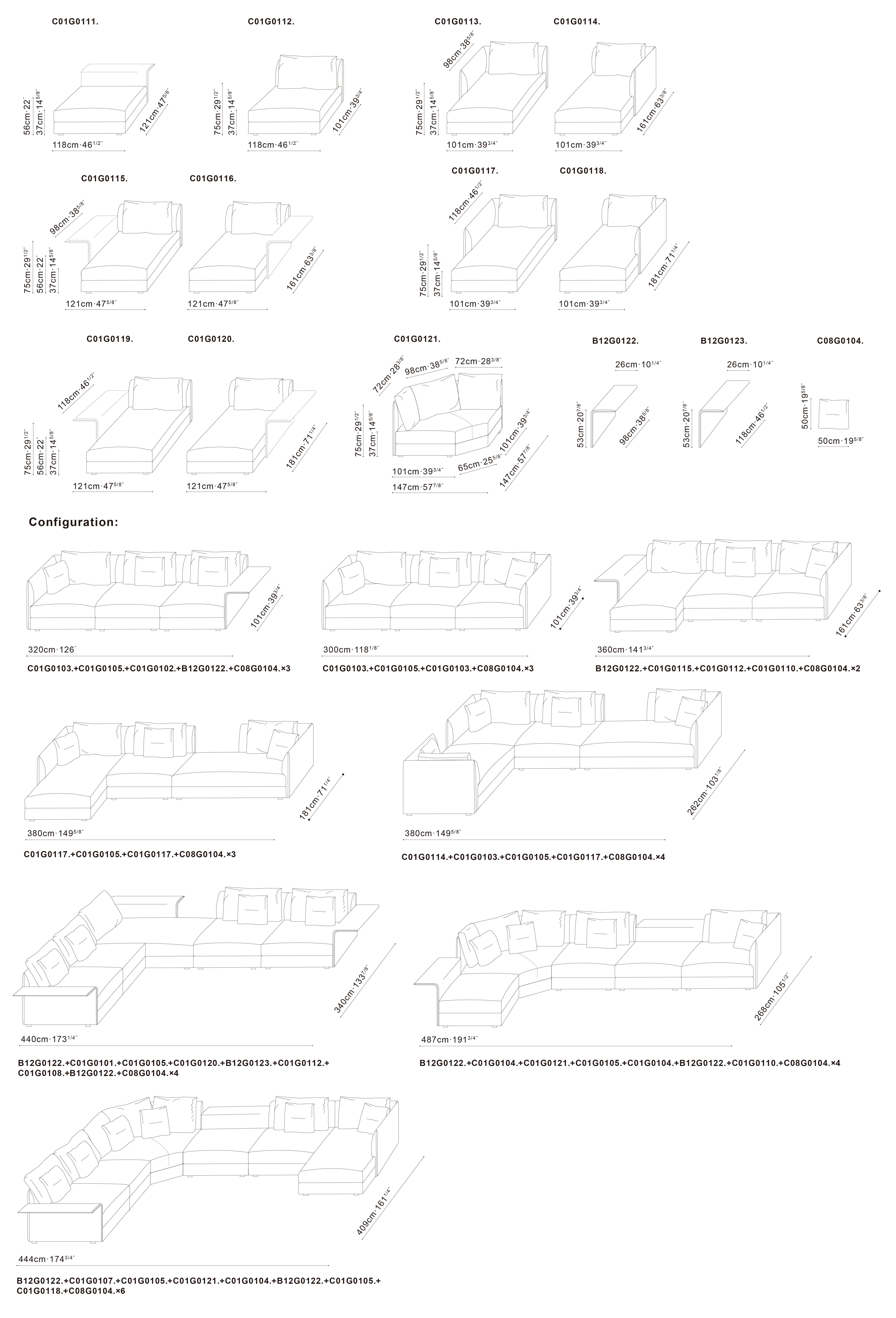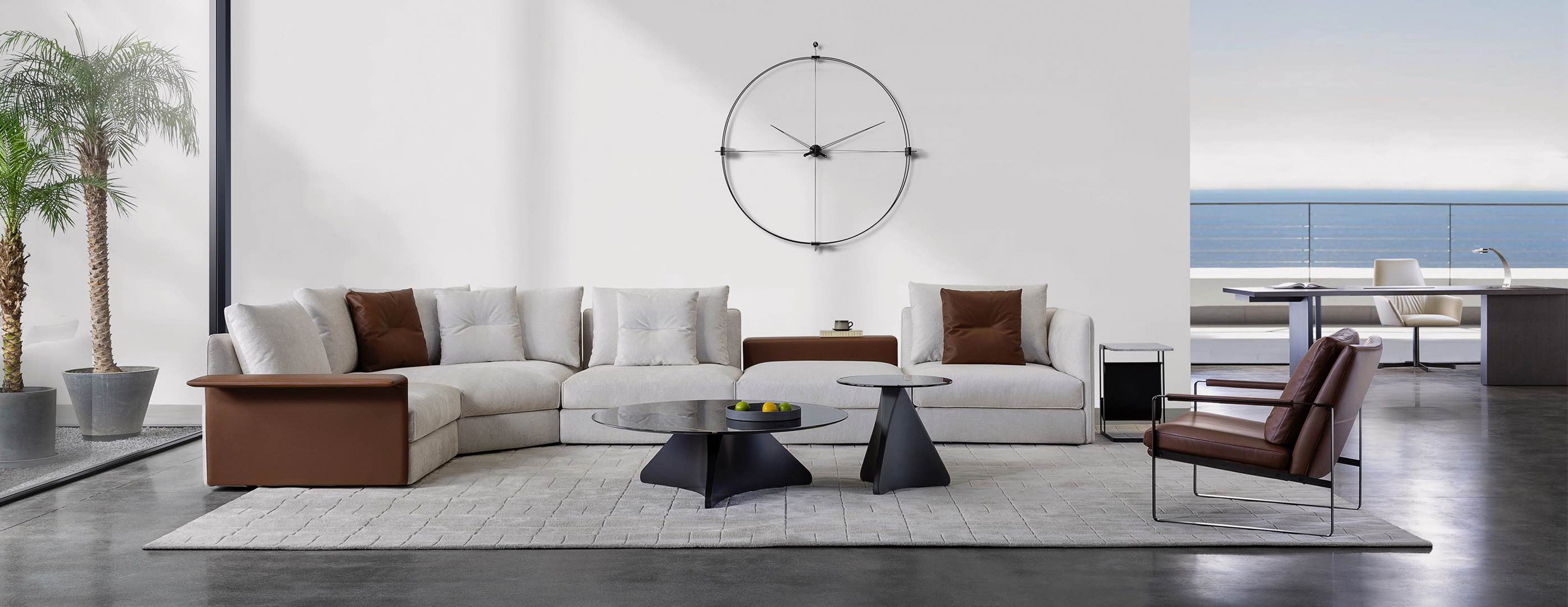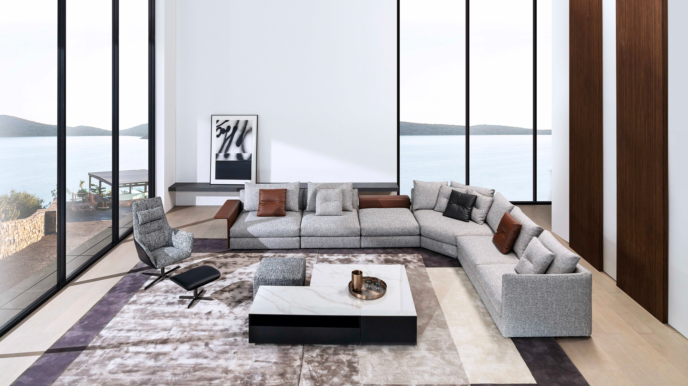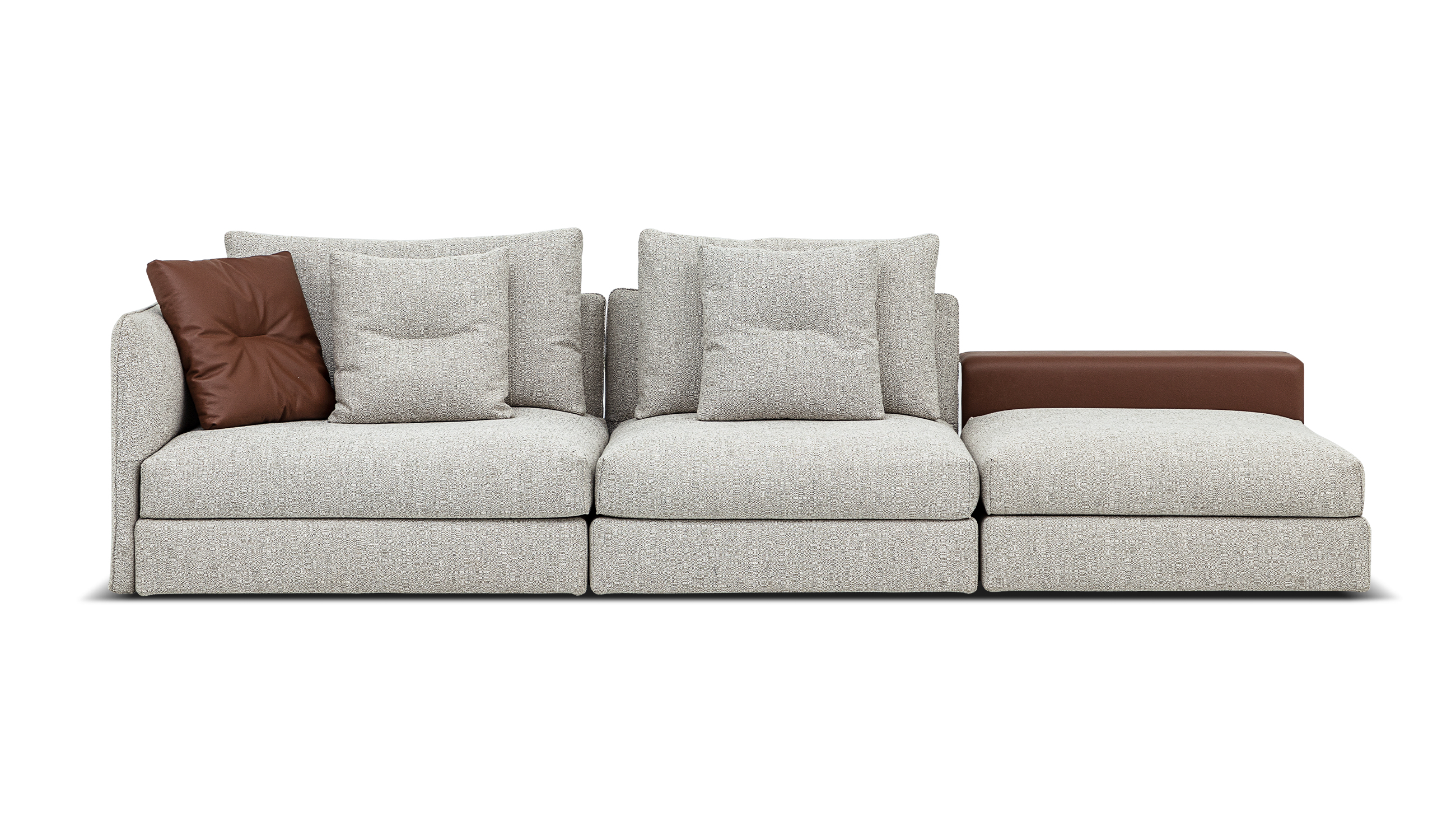 L型扶手,位置随心而动,增加空间和功能的多元性;六边形转角位,带来非凡的组合能力;靠包采用一字型拉线装饰,丰富视觉美感。