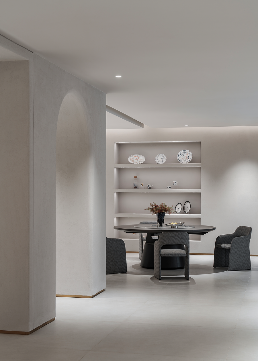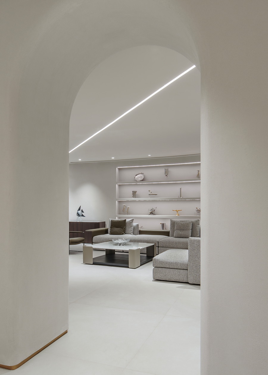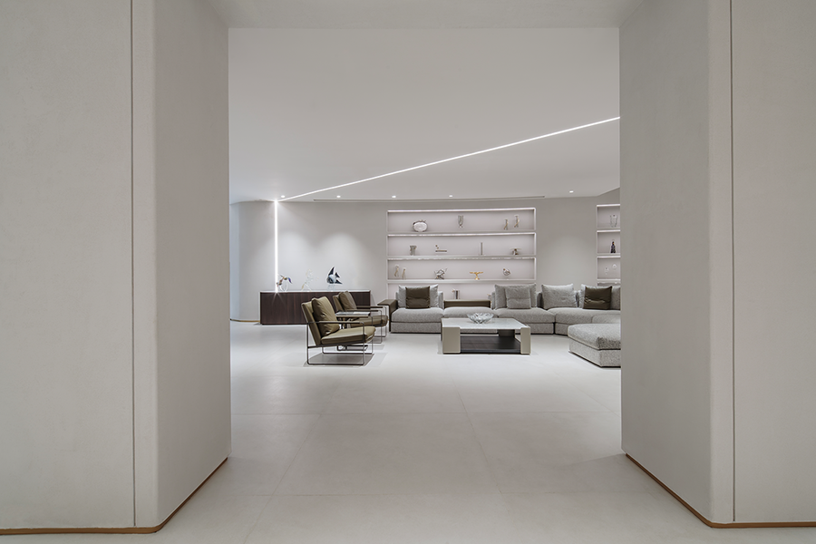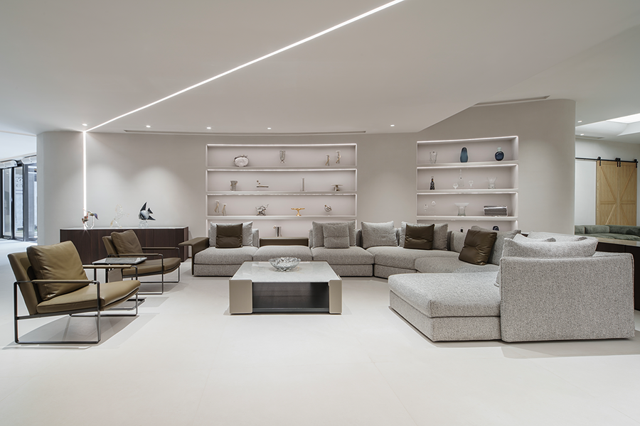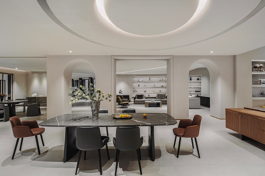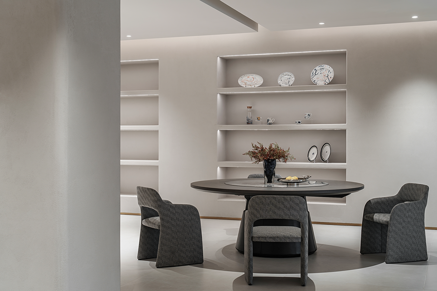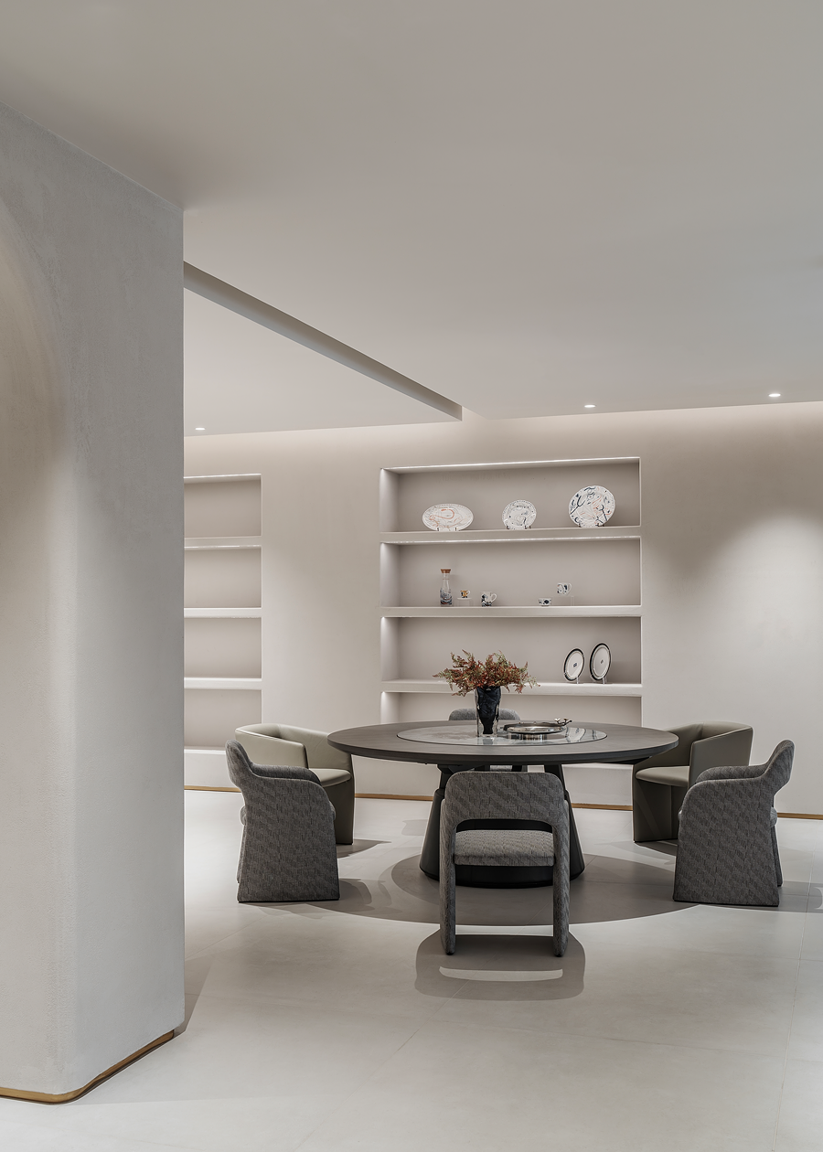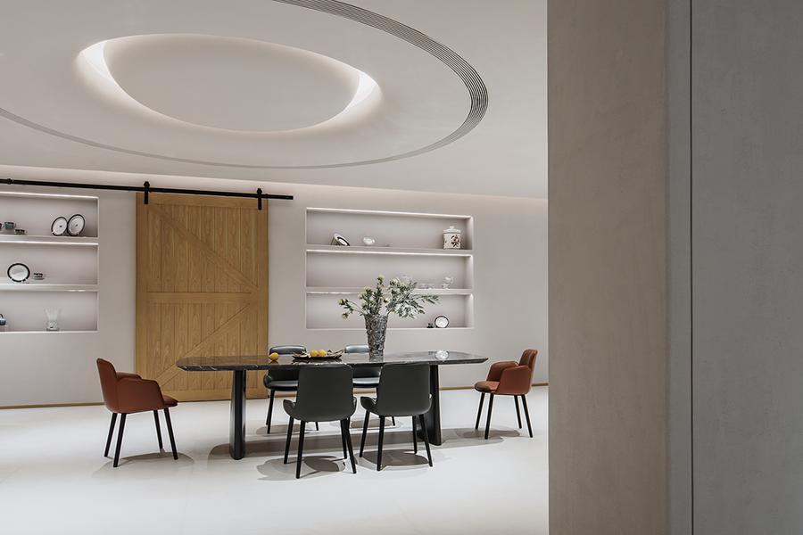 围合的会客空间,既能满足休闲需求,又能激发起人们对生活温度的向往。宽阔的展示空间,尽显多种家居可能性,让个人意趣充分展现。