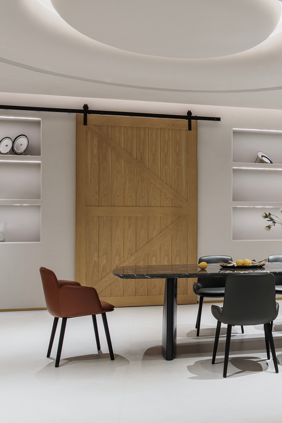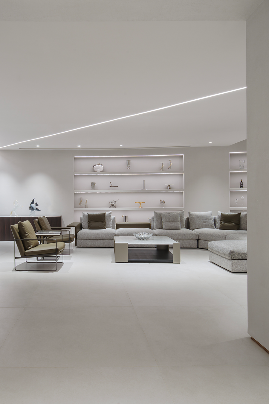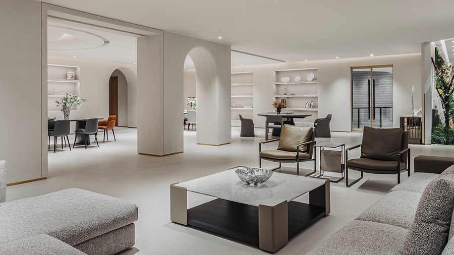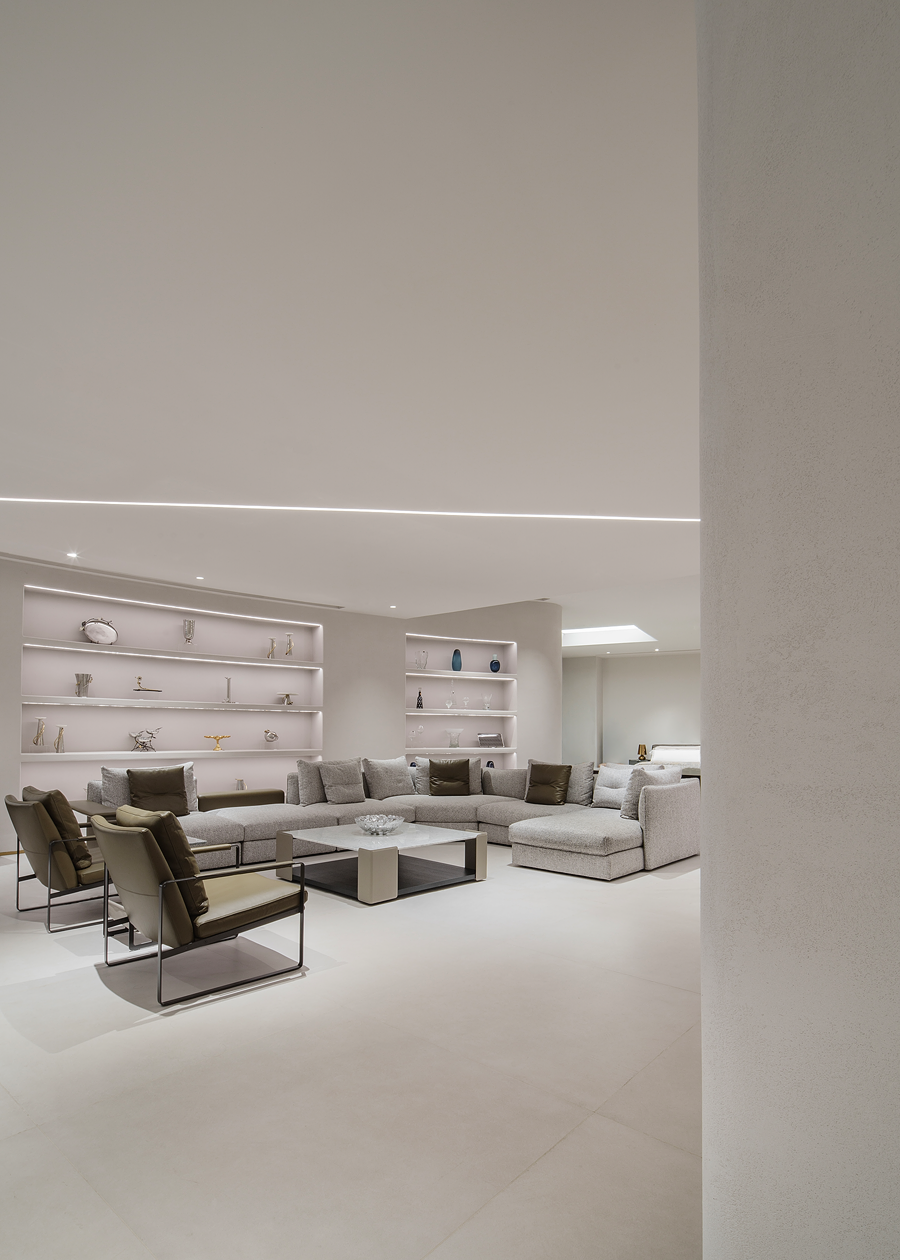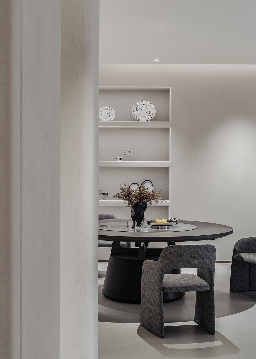 围合的会客空间,既能满足休闲需求,又能激发起人们对生活温度的向往。宽阔的展示空间,尽显多种家居可能性,让个人意趣充分展现。