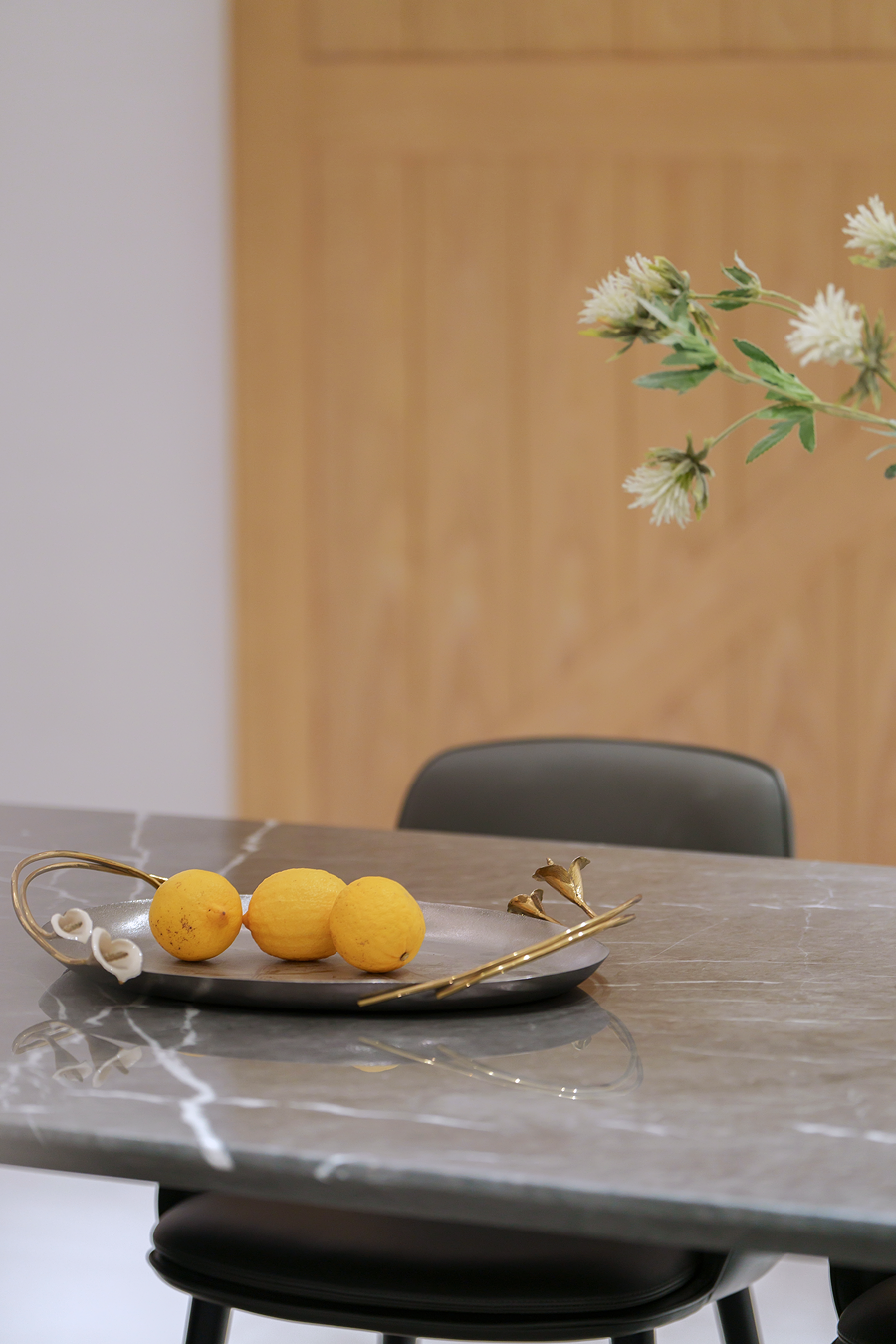 设计中随处可见的自然元素,使人即便身处钢铁丛林依然感受到高品质生活的质感。素色基调配以不同几何结构的家居用品及光影的变幻,更是令餐厅、客厅、卧房等不同功能区域边界分明却又和谐统一。