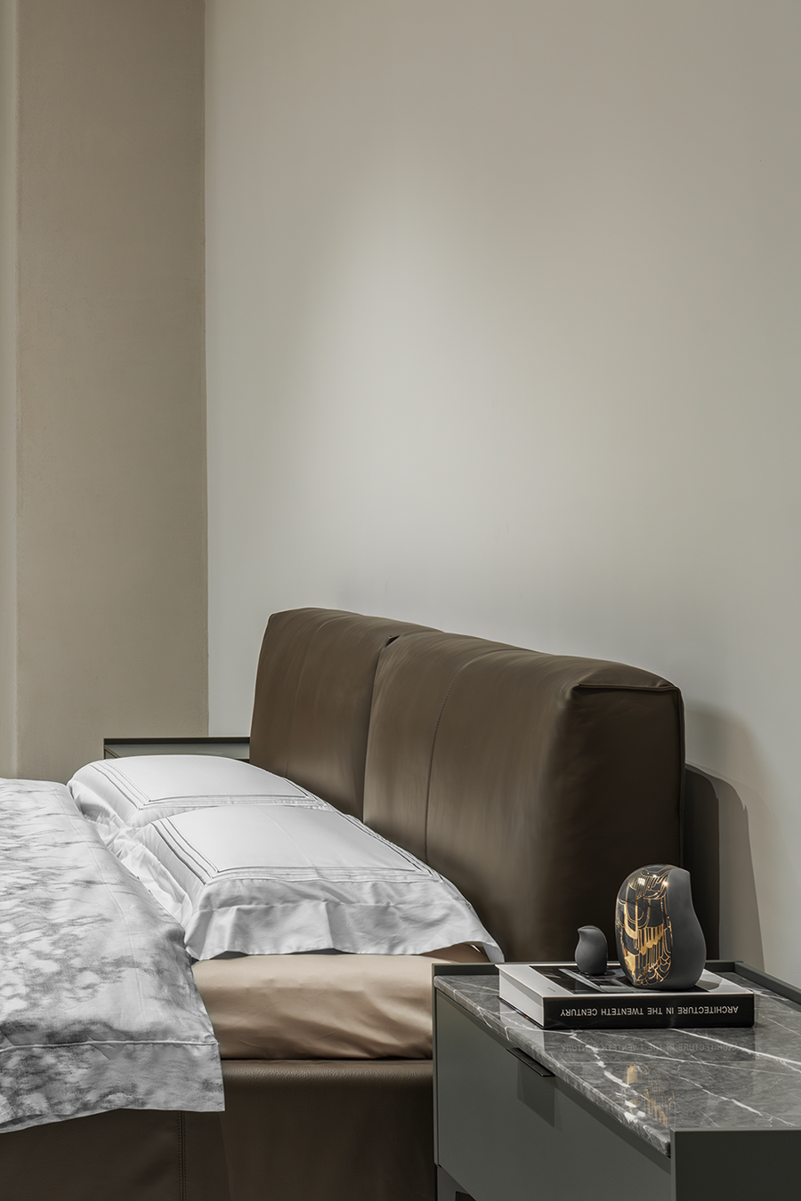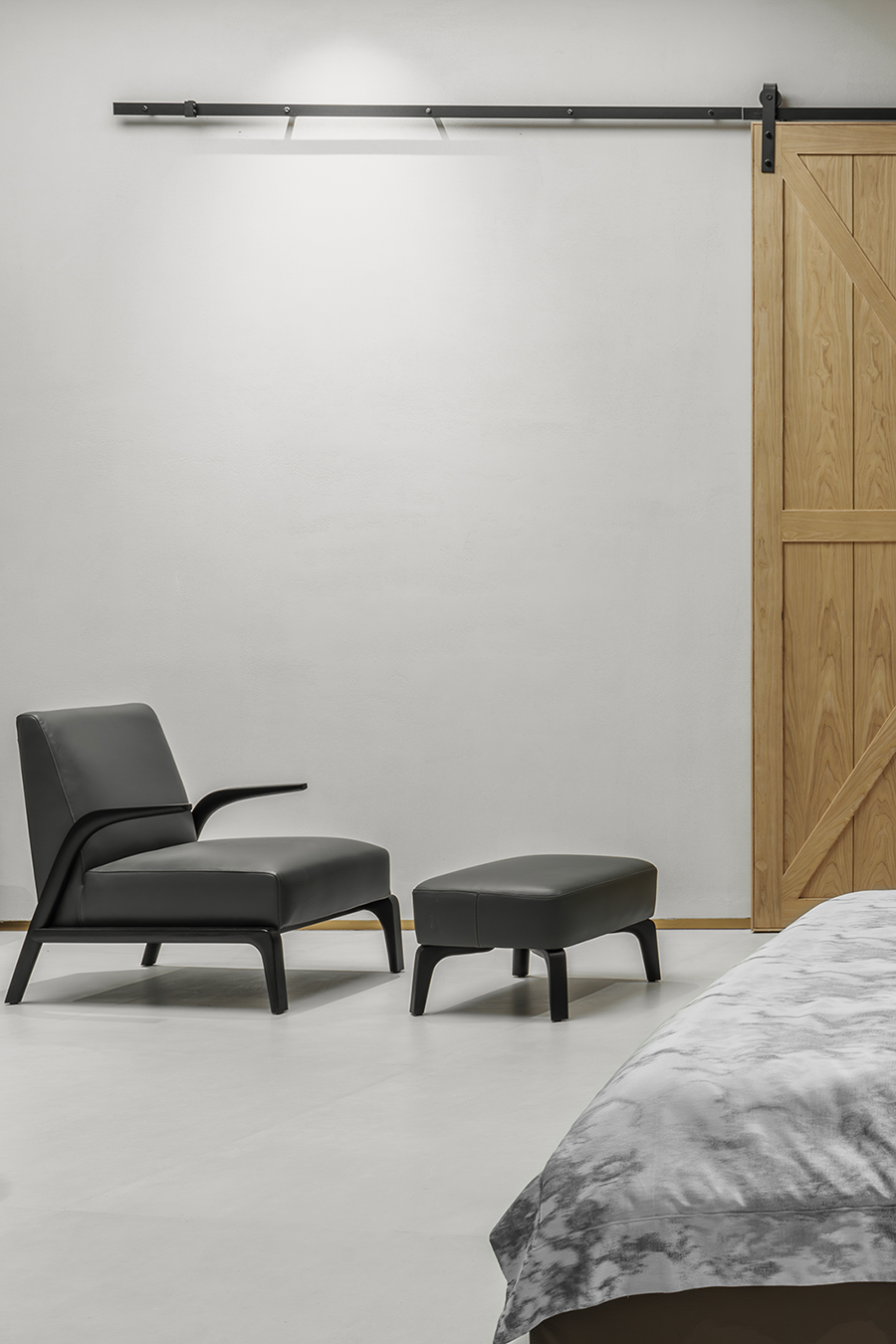 唯有保持充沛的精力,才能享受生活的甘美。卧室空间没有太多的修饰与约束,呈现出一种崇尚自由的生活方式。木质谷仓门与VENUS维纳斯休闲椅的结合,散发出大气而又不失自在的生活之美,使空间在留白中成就另一种休闲式的浪漫。