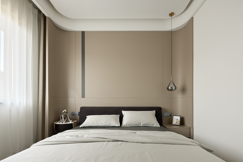 卧室作为主人放松和休憩的场所,在设计上更加注重舒适性和私密性。床头背景墙与客厅电视背景墙遥相呼应,整体风格和谐统一。饰品的搭配精致而富有艺术感,为卧室增添了一丝浪漫气息。