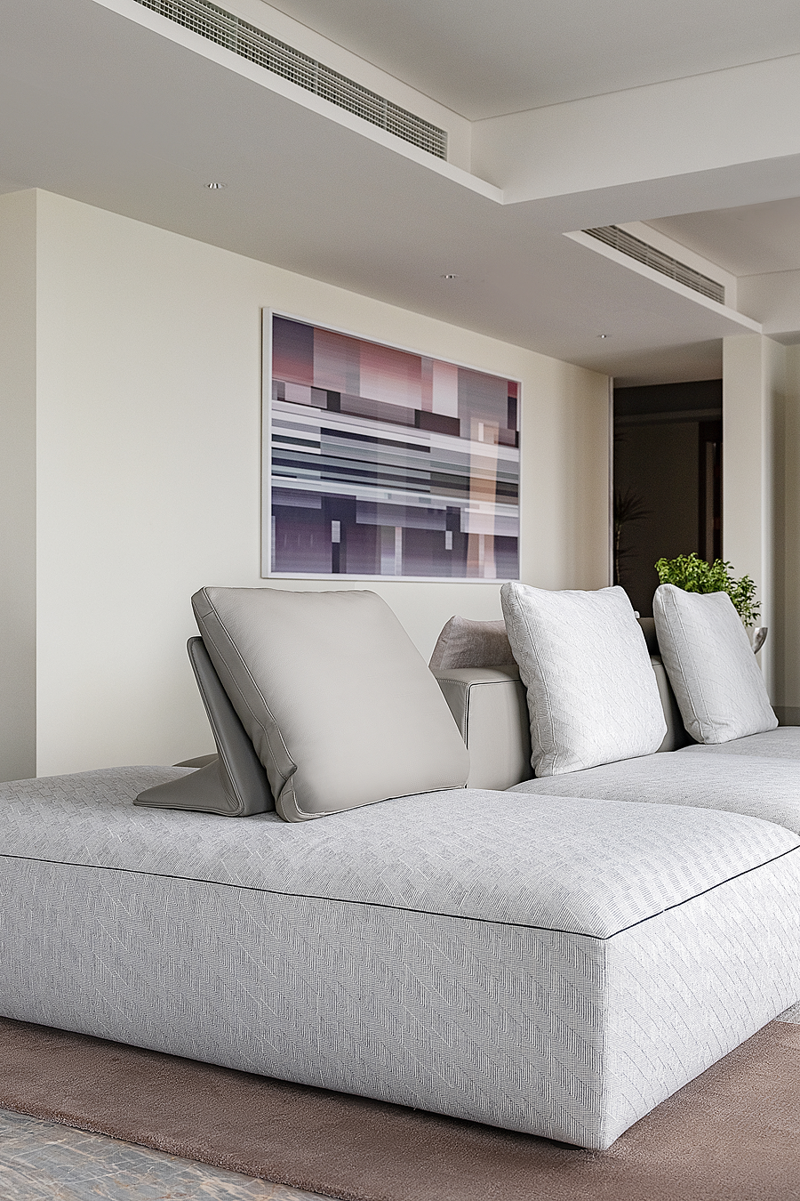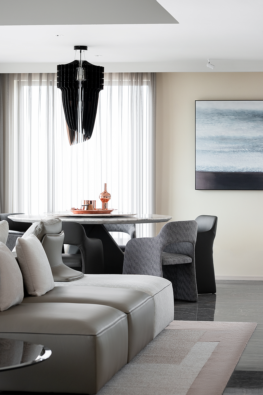 锐驰简约现代的设计、考究的材质以及精湛的工艺,完美契合了海碧台对高品质生活空间的追求。在与海碧台的合作中,锐驰全套软装的加入,赋予了空间独特的魅力。尤其在楼王项目中,塑造了高端的生活氛围。二者之间的合作不仅提升了项目整体的品质,也为居者带来了更加舒适和卓越的居住体验。