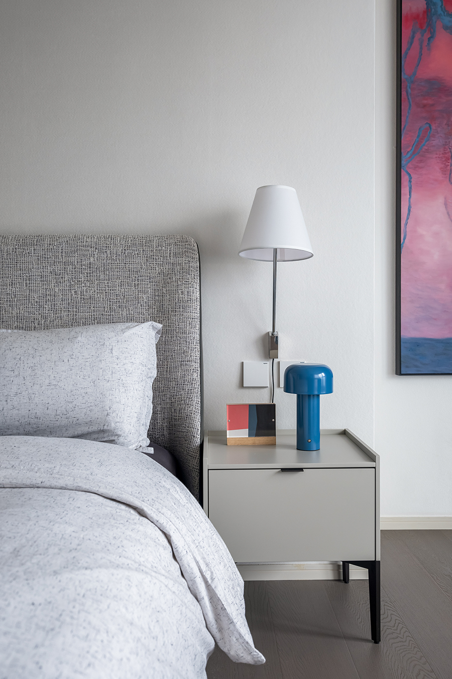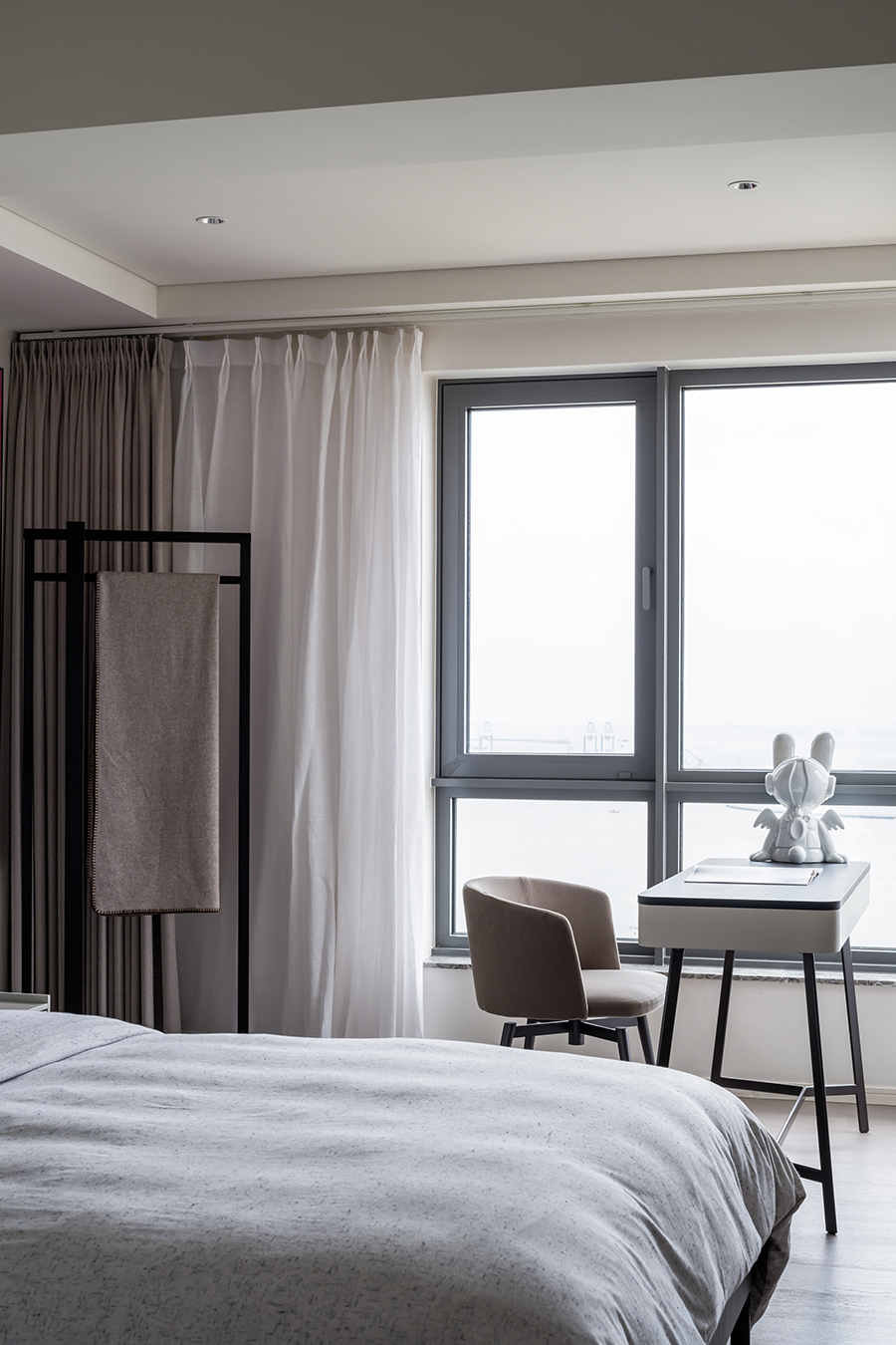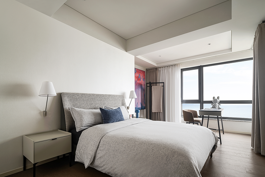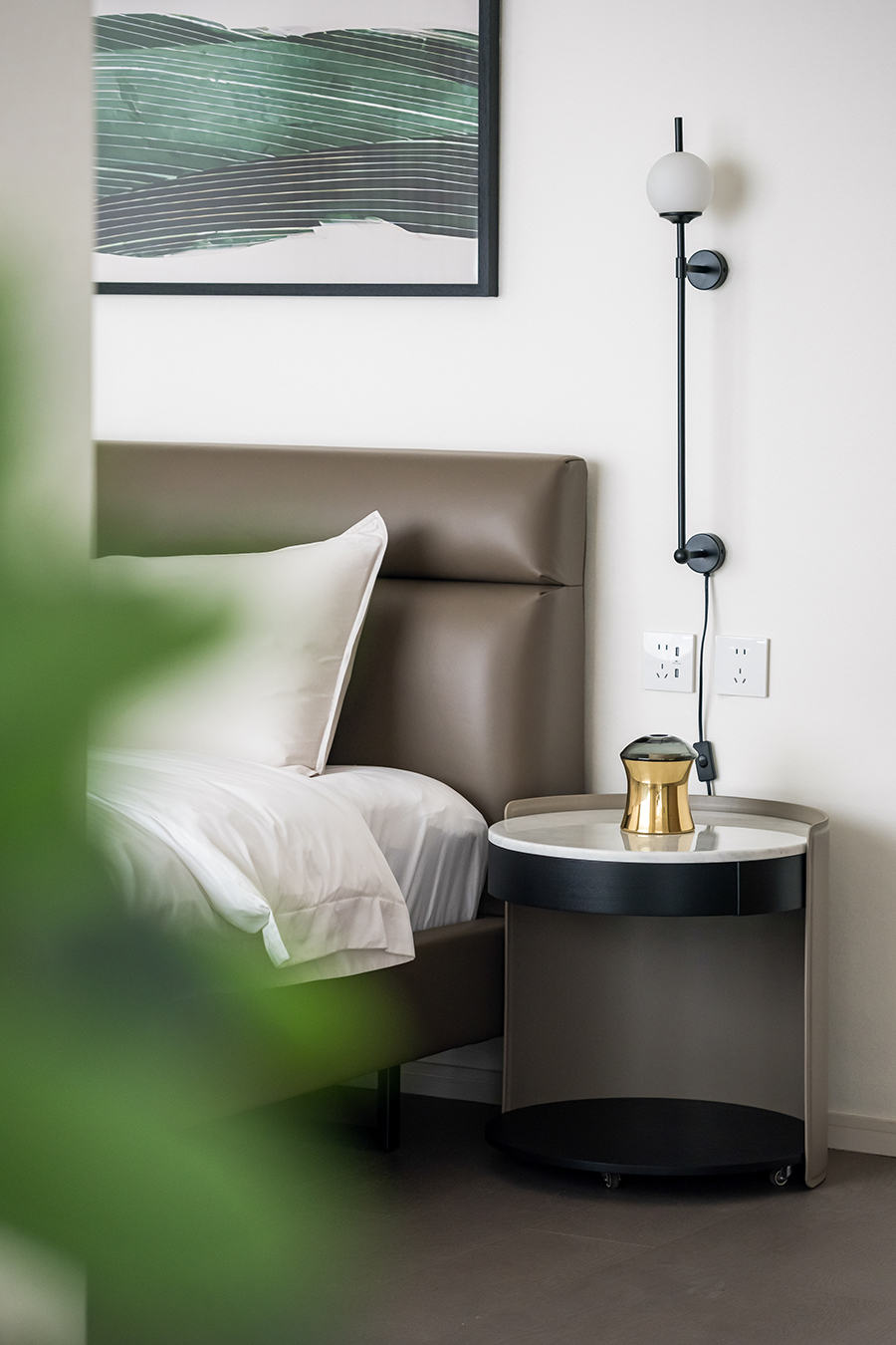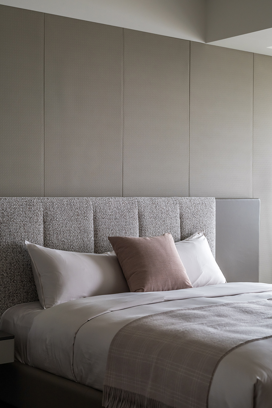 主卧的设计兼顾了私密性和灵活性。STRATUS BED云川床的高床背和屏风设计赋予空间结构感,为日常使用增添了舒适度。为居者提供一个宁静且贴心的居住体验,让每一次入住都倍感惬意。