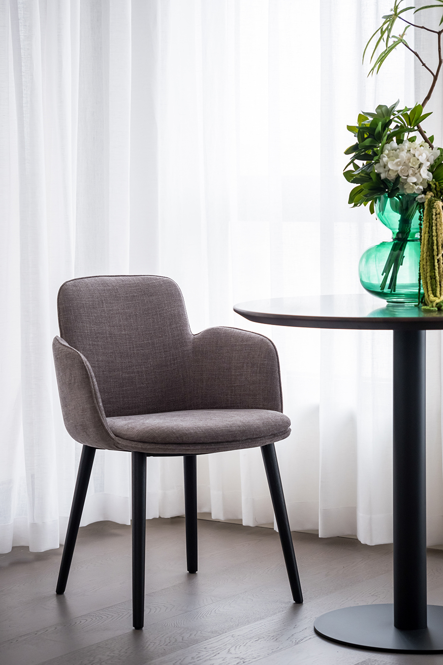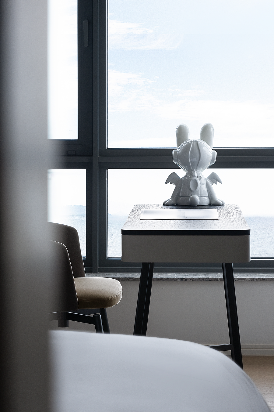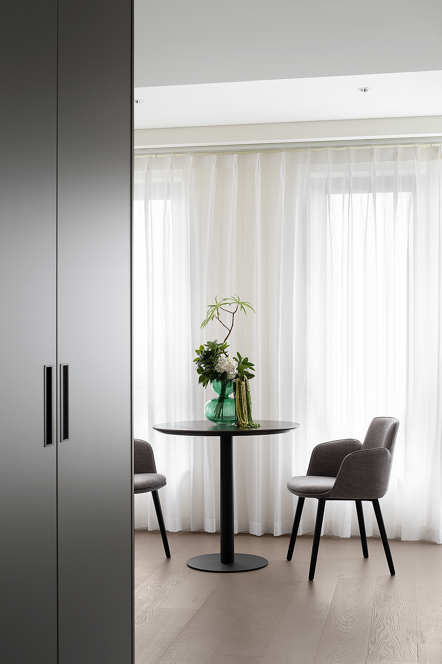 这不仅仅是为居者提供休憩的空间,还兼具办公学习的功能。得益于合理的布局,窗边设有一处由WITTY轻云桌与BALLET芭蕾椅组成的简洁实用的办公区域,为临时办公或学习提供了便利。